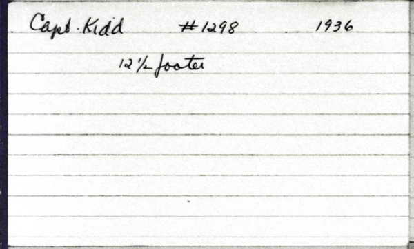 Yacht Club: Pequot Yacht Club, New York Yacht Club." (Source: Hood, Philip R. Wooden Boat Register, September 29, 2021. https://www.woodenboat.com/register-wooden-boats/captain-kidd, retrieved February 6, 2022.)